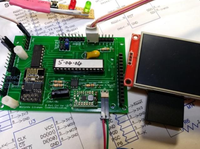 I have started a new thread but this should perhaps be read in conjunction with my post Headless MX170 Controller as this PCB sort of morphed out of the previous post/project as one all on its own. After three iterations the ver 1.3 board is there i think has all the functions and no more circuit errors (I hope). Shown below is the latest PCB fully populated with all functions tested OK. LCD working with Touch - OK 8 Port Ext with sw - OK Wi-Fi with sw - OK Flash Ram (matherp sw)- OK SD-Card on LCD (matherp sw)- OK ISCP - OK Just wanted to acknowledge Geoff for MMbasic and Peter(matherp) extensions they have turned the Micromite into a fantastic hobby and keeping the Grey Cells going! I do have boards if anyone wants one. PM ![]() ![]() Mike Codenquilts |