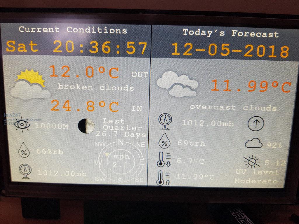 Just thought I'd show you my latest version of the weather station This one works using only an ESP8266 to get the weather from any weather server - I use openweathermap and a temp sensor for indoors |