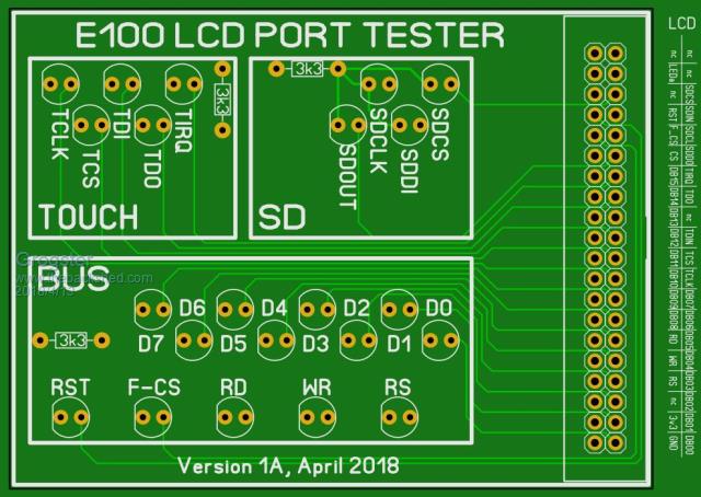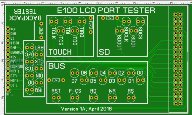 I have whipped up a simple PCB(all though-hole) to test the LCD port on E100 boards.