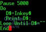 This test code does exactly what Geoff says it does. At the time I was trying to get INKEY$ to work for me, I must have been doing something wrong.