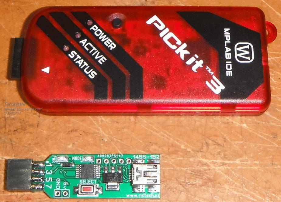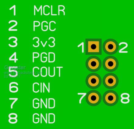 Perhaps this would be ever so slightly better? Or allow for vcc to be 3V (normal) or 5V with a jumper? RST 5V VCC RST GND RxD PGD GND PGC TxD 1x5 gets you standard ICSP. RST VCC GND PGD PGC 2x4 gets you GrogPort 2.0. Different pin arrangement from GrogPort 1.0. VCC RST GND RxD PGD GND PGC TxD Micromites and Maximites! - Beginning Maximite |