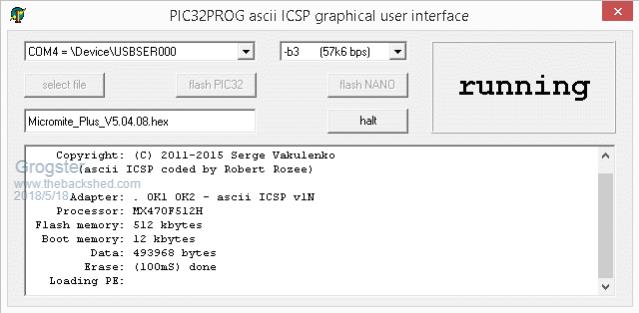 Here are both images just for you. ![]() ![]() ![]() To upload a HEX to a PIC32 chip, you use the 1455 as the programming tool, and PIC32PROG.EXE, which is a command-line programmer co-developed by robert.rozee and Serge Vakulenko. Rob write a nice little GUI for the front-end, so you can do it all with just a few mouse clicks: ![]() The procedure is: 1) Connect the 1455 to your Micromite chip 2) Press SELECT button to put the 1455 into ICSP programmer mode(LED lights) 3) Run pic32prog GUI, select HEX file and COM port that the 1455 is on 4) Click "Flash PIC32" That's all there is to it. ![]() "Flash NANO" is an option for the original concept that used an Arduino Nano as the basis of the programmer. You could click this button to load the code into the NANO module to make the programmer work. You can safely ignore that button, as we don't use it anymore. Smoke makes things work. When the smoke gets out, it stops! |