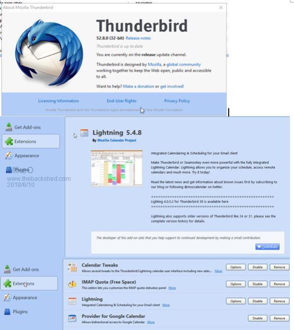 Reinstalled Thunderbird added the Lightning extension and no go, I get a pop up
