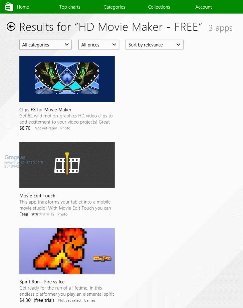When I searched for 'HD Movie Maker - FREE' or just Movie Maker, I am NOT given that as an option: