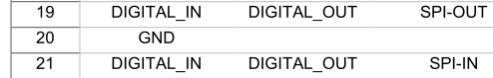 16 is T_DO which should be connected to SPI_IN 20 is T_DIN which should be connected to SPI_OUT |