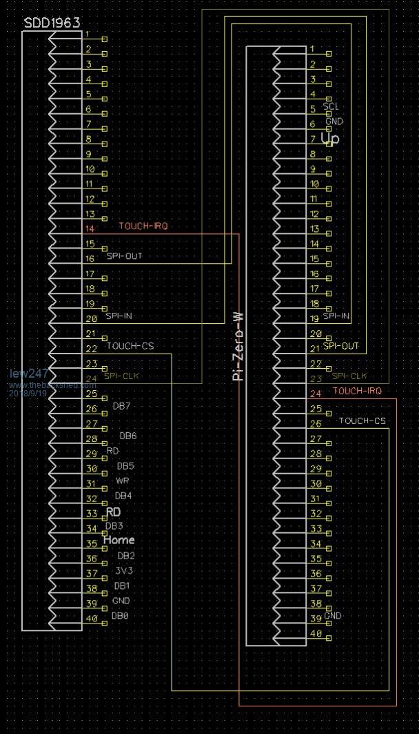 If it was right it would be working T_DO (pin 16 of the SSD1963 in your diagram) is the output of the touch controller it connects to SPI-IN T_DIN (pin 20 of the SSD1963 in your diagram) is the input to the touch controller it connects to SPI-OUT Your diagram above is incorrect - the signals are swapped. Check Grogster's PCB which is correct |