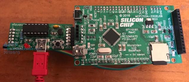 Glad it is running. I now program my MM Plus 64 LCD Backpack and talk to the console using the microbridge. The notebook I use has a 4K screen and the Microchip IDE/IPE just did not like it (it is a little better now but not great). That started me looking for other ways to update the firmware so I gave the microbridge a try. Get yourself a microbridge kit. I have a genuine pickit-3 and also pickit-4 and the microbridge. The microbridge with both serial (with your choise of comms software) and icsp port using pic32prog is much easier. You can keep the comms window open, just disconnect (in the comms software), press the mode button on the microbridge and run pic32prog, when it is finished just go back to your comms software and reconnect. No cables to change or usb disconnect/connect issues, one nice little convenient module does both. If you are using the MM LCD Backpack V2 it has the microbridge build into the Backpack. So same toolset just need to load different firmware file depending on which you are working with. Here is a picture of it connected up for both ICSP and Console (front and back). ![]() ![]() |