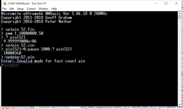 This version includes various bug fixes as per MM+ 5.04.09 as well as new functionality supporting high speed counter/timer functionality. The idea for this is copied from code I developed for the the Armmite H7 but it works just as nicely on the MMX.