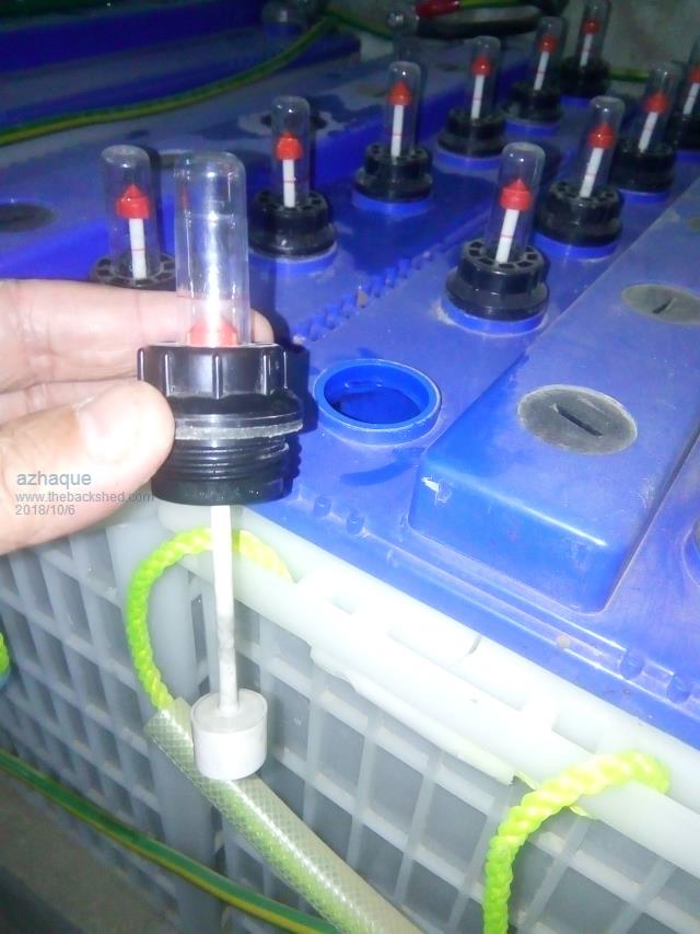 The old exide batterys had a similar float on them (built into the watering cap) and they are indeed a huge timesaver, I had a set back in the 90's, the monthly checkup took literally seconds in most cases... walk into shed- look along floats- if all blue, do nothing, if red, top up (they even had flip open lids rather than the screwin style)