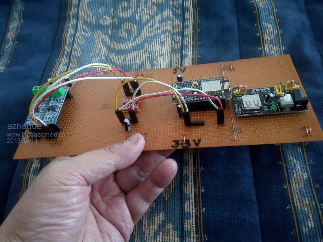 The module on the left side of the board is the power supply which provides both 5VDC and 3.3VDC. Very convenient to put onto the veroboard.