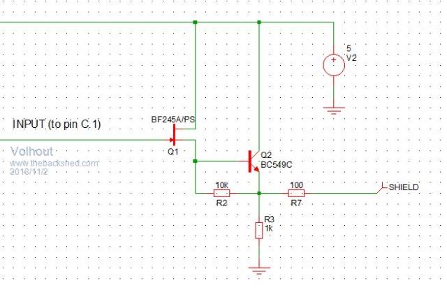 ' in a discrete amplifier, and connected to a shielding alu foil.