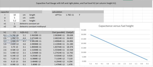From experiments (later confirmed by calculation) the location of the plates determines the exact relation between fuel level and capacitance.
