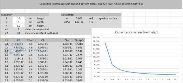 If the tank is filled with methanol (relative permeability = 33) the capacitance is 33 times as high.