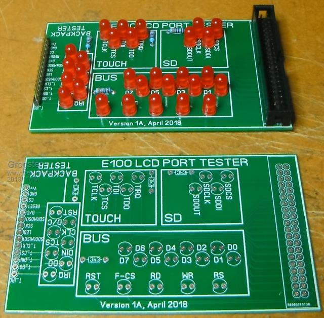 Initially set to test D0-D7 LCD-RST T-CS and T-IRQ on and E100 Board