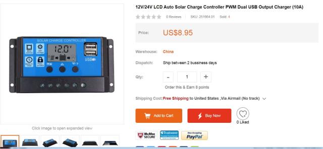 G'Day lizby Just out of curiosity I bought one of your controllers and a 30V 5A bench supply. I set up the supply for 20V and 4A and connected it all together with a 4 OHM load and a 12V battery that had been on float for days. It all behaved as expected. The power supply behaved like a solar panel and the battery charged at 4 - 3 = 1A until it reached float again. So the controller can be used as a smart battery charger BUT the device cost $10 the power supply was $63 for 5A and probably $85 for 10A so a dedicated battery charger is probably cheaper. But that is a lot of technology for $10. Peter |