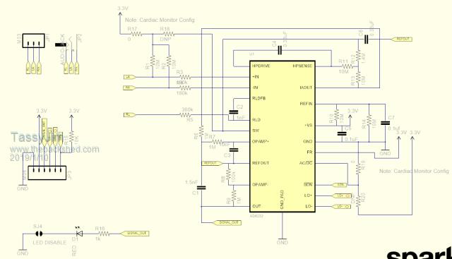 I already have a monitor but for the price, I had to order a module to play with. Sparkfun have a good writeup of the module and a link to the github page which has the circuit for the module in Eagle format. I assume it's the same design! ![]() And the image in a ZIP so it's readable. 2019-01-10_120253_AD8232.zip Jim VK7JH MMedit |