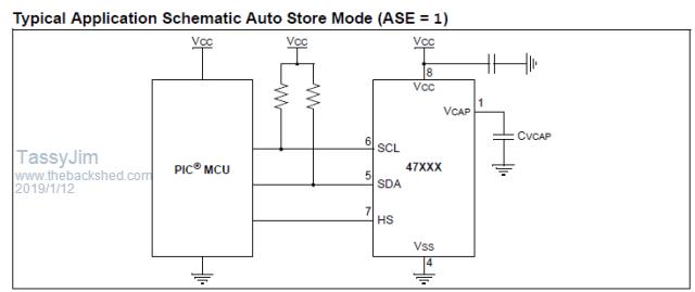 This started before the current VAR RESTORE problems mentioned elsewhere. Lew247 asked me to help him with a small project. He wants to know what time power failed (or program stopped for any reason). He told me about some interesting Microchip offerings. The 47L04/47C04/47L16/47C16 (47XXX) is a 4/16 Kbit SRAM with EEPROM backup. The device is organized as 512 x 8 bits or 2,048 x 8 bits of memory, and utilizes the I2C serial interface. ![]() The advantage over 'VAR SAVE' is The SRAM won't wear out and the backup is fully automatic. Once the control register is set, it saves the SRAM to EEPROM whenever power fails and restores when power returns. It also retains data over program reload and even firmware updates. It uses a ~6.8uF capacitor to give it time to act when power fails. Cost is about $1 The disadvantage is, you need an extra chip and capacitors. You may also be tying up the I2C buss a bit depending on how often you update the data. I went with the 47L16 because it was available in DIP packages. All the program does is read the data when the program first starts and the last saved data is there. With a normal stop and restart of the program, the data stays in SRAM but with a power failure, it saves to EEPROM and restores again ready for retrieval. If you force a save or retrieval, you have to allow time for the operation to complete. The time required depends on the chip used. Output: Last shutdown occured at 00:00:12 15:53:00 15:53:01 15:53:02 15:53:03 15:53:04 15:53:05 15:53:06 15:53:07 15:53:08 > RUN Last shutdown occurred at 15:53:08 15:53:28 15:53:29 15:53:30 15:53:31 15:53:32 15:53:33 15:53:34 > > DATE$="12/01/2019" > TIME$="15:54:22" > RUN Last shutdown occurred at 15:53:34 15:54:26 15:54:27 15:54:28 15:54:29 15:54:30 > The first save was before the clock was set. With a battery backed RTC, you can record the downtime etc. I used an arm-L4 for the test without battery backed RTC but any mite will do. I chose to open and close the I2C on each call but, in real life, it might be easier to open once and leave it open. Jim VK7JH MMedit |