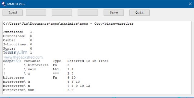A quick update. The original was getting confused between globals and locals 2019-01-20_125634_MMEditPlus.zip Brian, I don't know why Notepad++ couldn't find where you put it. Or was the program opening without any file? Jim VK7JH MMedit |