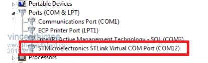Open device manager (windows) and under 'ports COM & LPT' look for STMicroelectronics STLINK Virtual COM port. Mine was COM12