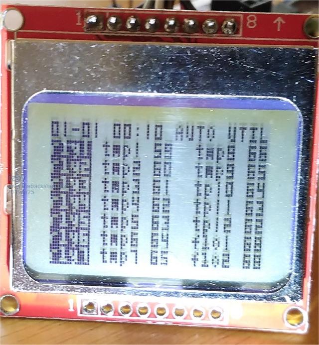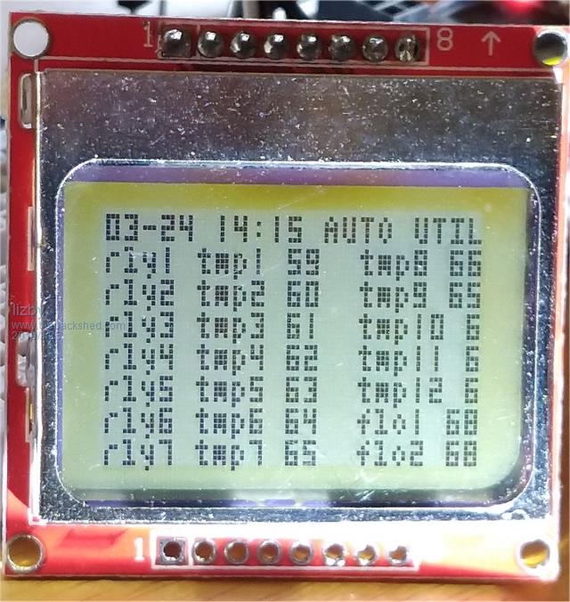 Here is a Nokia 5110 lcd with the tiny font (font 3 in the L4 distro for the N5110): ![]() The screen shot in the original post of this thread has the letters inverted. How do you do this with the TEXT command with a monochrome font? [code] ' option LCDPanel N5110,L,11,10,9,&HC0 ' L432 option default integer dim string A nRows=8 ' 12 for ILI9341 j=mm.vres/nRows ' row height for 8|12 rows jj=mm.hres/12 ' horizontal divisions fnt=3 cls font fnt A=mid$(date$,4,2)+"-"+mid$(date$,1,2)+" "+mid$(time$,1,5) text 0,0,A+" AUTO UTIL" for i=1 to 7 : text 0,i*j,"rly"+str$(i) : next i for i=1 to 7 : text 5*mm.fontwidth,i*j,"tmp"+str$(i)+" "+str$(58+i) : next i for i=1 to 2 : text 14*mm.fontwidth,i*j,"tmp"+str$(i+7)+" "+str$(67-i) : next i for i=3 to 5 : text 14*mm.fontwidth,i*j,"tp"+str$(i+7)+" "+str$(67-i) : next i for i=1 to 2 : text 14*mm.fontwidth,(i+5)*j,"flo"+str$(i)+" 68": next i [/code] PicoMite, Armmite F4, SensorKits, MMBasic Hardware, Games, etc. on fruitoftheshed |