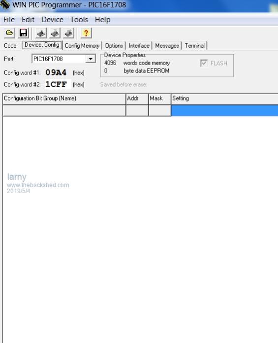 I tried to enter the 16F1708 into WINPIC following the procedure given in the help, but I eventually reached an impasse. I could not work out how to proceed further. The instructions are vague, so unless someone can help me, I will give up that option.