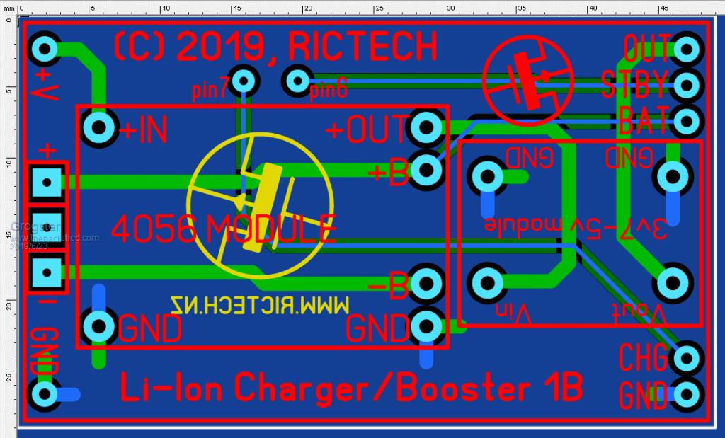 If anyone is interested in the little green host PCB, let me know on this thread. I already plan to add some extra pads along the output edge of the board, to route the LED signals from the charger module via some short links, so that a simple 4-way Dupont wire can provide power and charger state signals to your MM project.