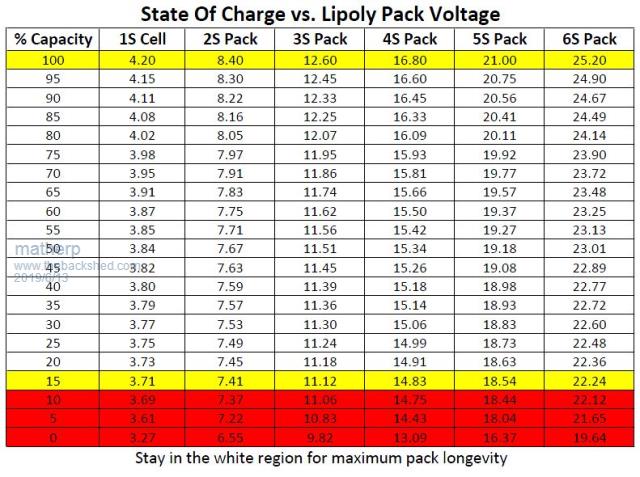 Does the chart apply to both 18650s and the form factor that Grogster is using? And there's the question of different Lipo chemistries, which result in different ideal low-voltage dropout points.