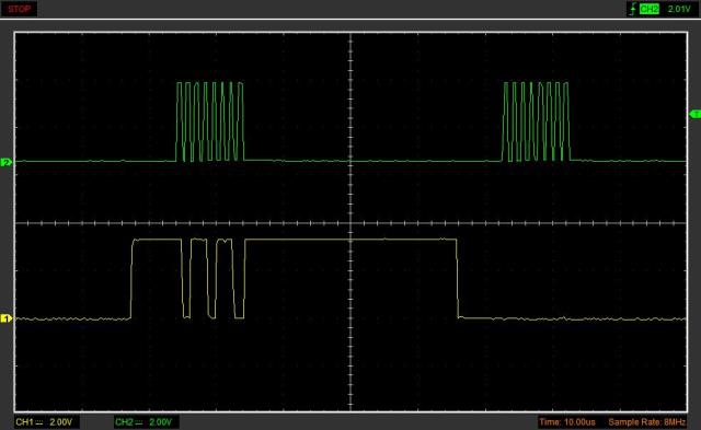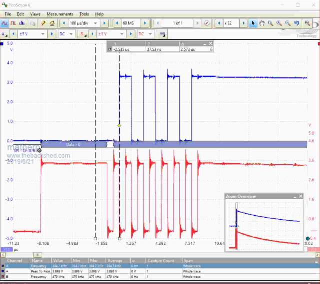 The good news is that I bought my own USB Scope instead of having to borrow the DSO from work. Bloody marvellous.