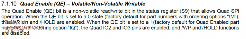 The chips supplied on my boards are of the variety that default to QUAD ENABLE being set!