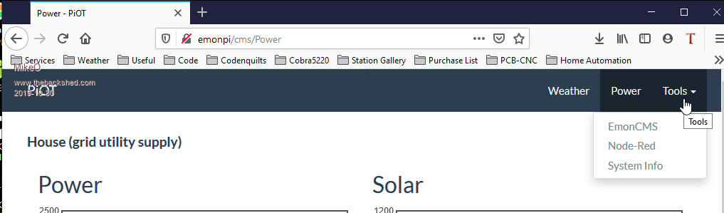 So to PiOT, silly name but i had to call it something! As the basis of the image is a PHP app called EmonCMS which is part of the Open Energy Project in the UK but it is a terrific application for logging data, it also has great facilities for Visualizations and Graphing. EmonCMS coupled with Node-Red , mmbasic and a Simple but Powerful CMS (Typesetter CMS 5.1) for a Web U/I. All this wrapped together as a "ready to go" RPI image , for me , makes the basis of a nice Home Automation System with fairly limitless functionality but could also easily be a quick way to a logger/controller for many other projects.
