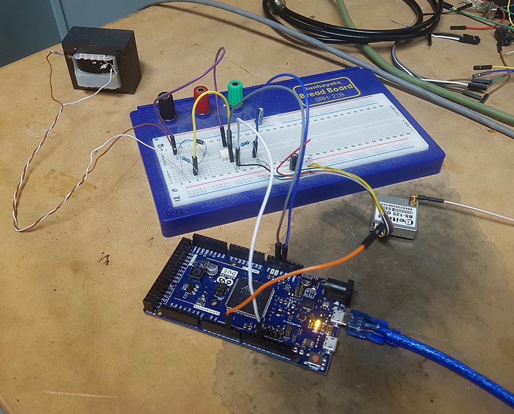 That gives us the nominal 50Hz input. Get a $15 GPS module with 1PPS output, power it from the uC (in this case an Arduino Due) and feed it into another pin.