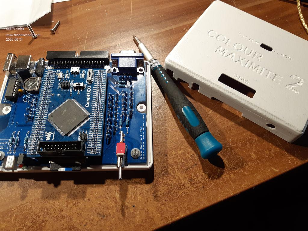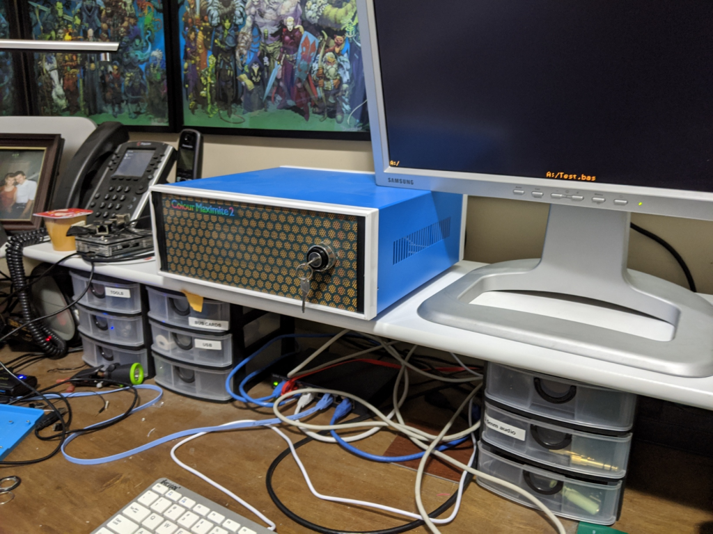 I wasn't happy with my brand new CMM2 sitting bare on my bench alongside a lot of other metal junk on my desk. So I hastely printed out a label and put together a prototype case (the front panel is just thick cardboard covered with a printed surface). When I get comfortable with how I am using the CMM2 I will decided on what I/O goes where and either cut or 3d print permanent front and back panels. For the time being it just has the power switch exposed at the front. Yes, I know it's an ignition key switch.... but is there a better way to turn this amazing bit of hardware on or off? I think not! :-) I also dug out an old 1600x1200 (aka 800x600) monitor that I bought back in 2004, but couldn't bear to part with (mainly because it cost me an arm and a leg back then). As the case evolves I will add more pictures. But for the time being, I'm going to play with the programming side (now that I'm not worried about it shorting out on the junk on my desk). ![]() ![]() |