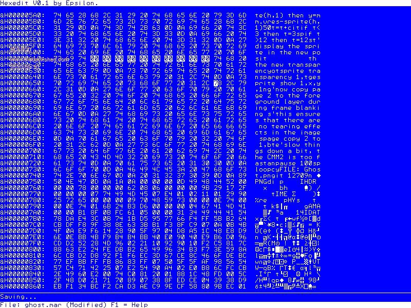Hi elk1984. I'm glad you wrote this. I was a bit worried that nobody would get it. You can of course edit your binary files on PC, with hex editors that are probably much fancier than mine, but where's the fun in that.