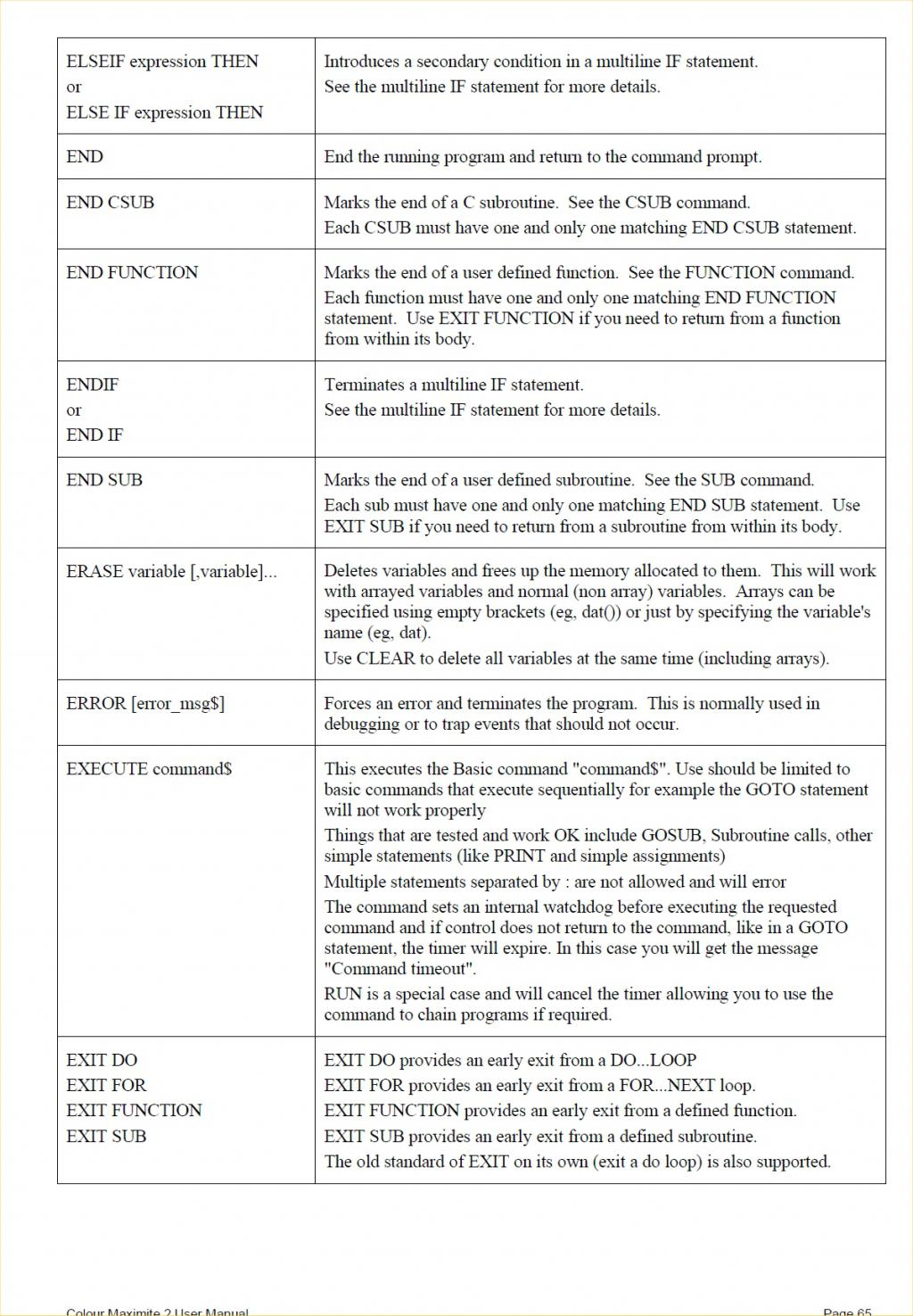 It says all manner of useful things but CLEAR is documented to delete all variables ... if there is a way to delete a single variable then it would be helpful if there was a reference to follow from CLEAR otherwise it seems not too stupid of me to assume that there isn't such a mechanism.Sorry, I haven't yet printed and read, and re-read the manual obsessively because the firmware author is an over-achiever and may yet require further additions to the manual ![]() Best wishes, Tom Edited 2020-10-17 00:19 by thwill MMBasic for Linux, Game*Mite, CMM2 Welcome Tape, Creaky old text adventures |