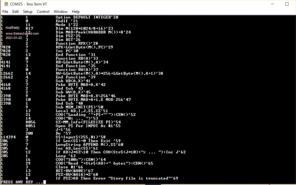 As you load a program from the SD into the CMM2, can you make an index table (in RAM or SD?) that you would, in showing the profile output be able to get back to the source line number? This wouldn't be done always, just when profiling enabled. Micromites and Maximites! - Beginning Maximite |