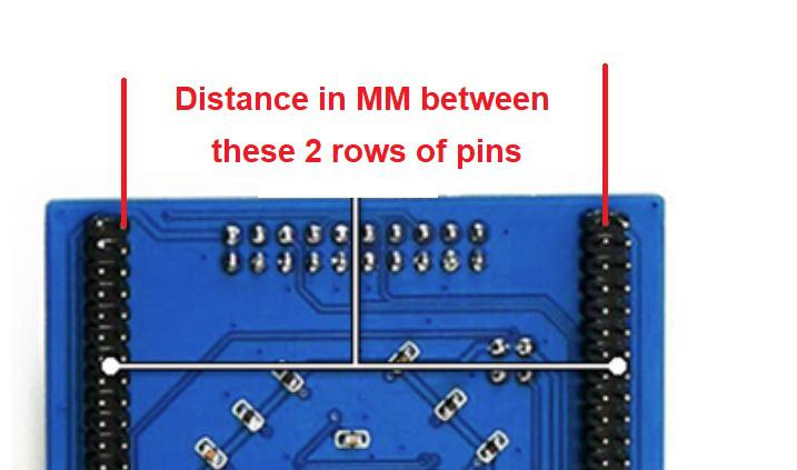 Does anyone know the distance between the 2 rows of pins on the Waveshare board?