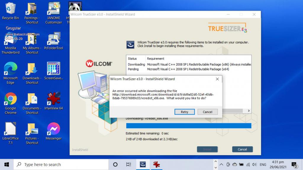 This one is interesting. New laptop, trying to install Wilcom TrueSizer application, which is used to translate between Janome and Brother sewing and embroiding machines data files. The installer keeps saying I need the C++ 2008 SP1 redistributable, but they are already installed. I suspect the installer is NOT checking that, it is just saying it is going to install them - which would be fine, but the links are no longer valid, and the installer DOES NOT give you any alternative - such as SKIP for example. ![]() ![]() Does anyone know a way around this? I suspect that Microsoft have moved the location of the download, so the embedded link in the installer is now no longer valid, so the installer can't download what it wants to, and falls over at that point. Wilcom, who made the software, now only do a cloud-based tool, but we need the installed application one as it also allows File Explorer to show thumbnail images of the JEF files. (Janome Embroidery File) Windows knows nothing about JEF files, and none of the standard picture viewers can even OPEN the files - they all say the files are corrupted, but they are not, as you can open them all fine in the Janome software package. My friend REALLY needs that software, as it is how she converts between Janome and Brother file formats, and without it, she is pretty stuck. The old laptop she had, which has exactly the same Windows version on it(ten home 64-bit) DOES run this software, so someone at some point, has worked out how to get around this issue, but I have not been able to discover the key to this problem yet. Smoke makes things work. When the smoke gets out, it stops! |