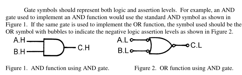 Hi All, As Promised earlier. Here is a snippet from >>> This PDF <<< on Negative Vs Positive logic (Page 3 of 8) ![]() This is showing the Reverse of mine as an AND in positive logic and how it should look in as an OR in negative logic. Note the shape changes and the inputs/outputs all toggle the bubbles. @Paul_L Do you really want an answer to totally confuse every one? A NOR is simply an OR followed by a NOT (Inverter) on the output. Then of course there is XOR or exclusive OR.. (Crikey where is this coming from, I learned all that 122 years ago. I thought I forgot it all. Regards, Mick Edited 2021-07-03 14:44 by bigmik Mick's uMite Stuff can be found >>> HERE (Kindly hosted by Dontronics) <<< |