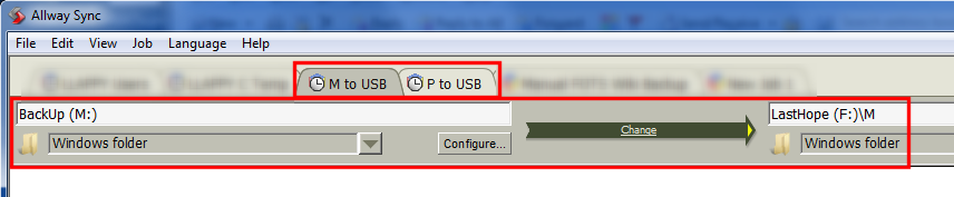 then using Allway Sync (excellent backup software) with the two backup jobs to simply replicate the entire structures (i.e. new/modify/delete are propagated) to two folders on last hope