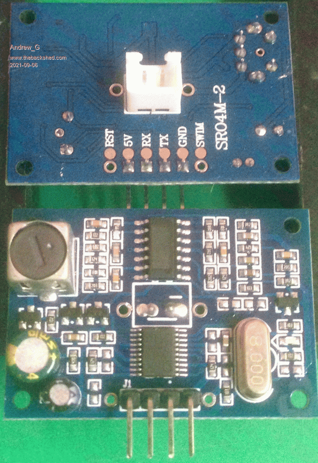 Jim, This is the module I bought - it differs from what arrived (which have the RST and SWIM) and whatever else. On one site I looked at they spoke about the newer modules needing a longer trigger to work properly - could this be an issue? Is there a way of doing it without the DISTANCE command? Cheers, Andrew |
