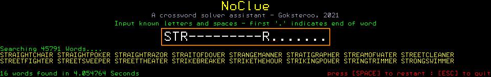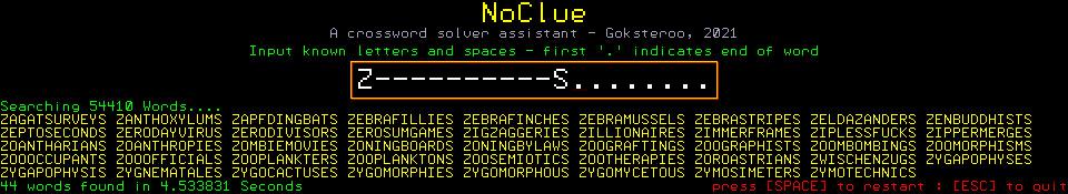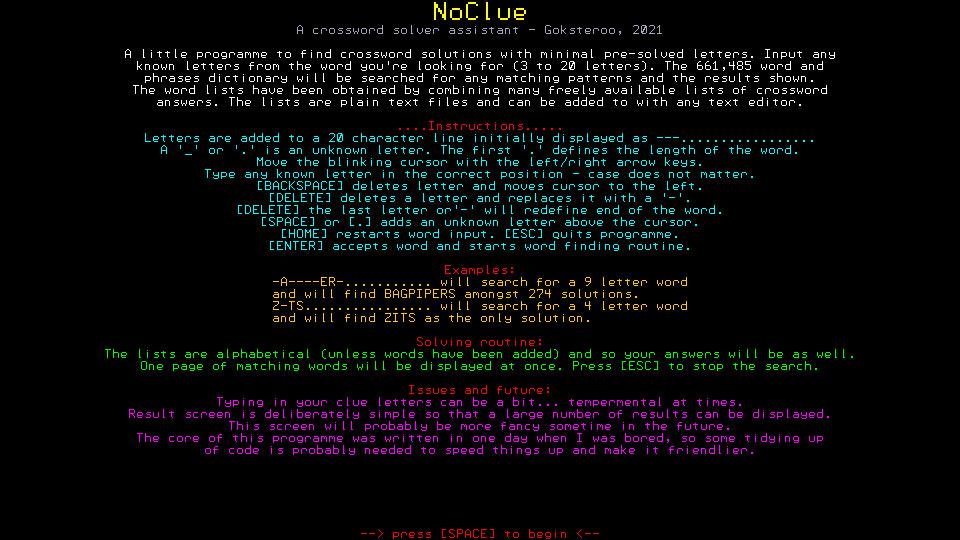 Forum Index : Microcontroller and PC projects : NoClue - CMM2 Crossword assistant