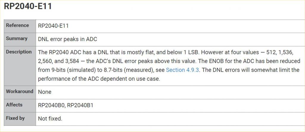 From the RP2040 errata Differential nonlinearity (acronym DNL) Effective number of bits (ENOB) |