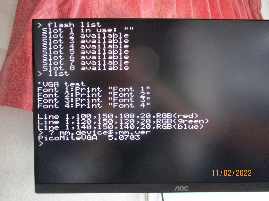 Forum Index : Microcontroller and PC projects : PicoMite: Flash Slots 1st line....