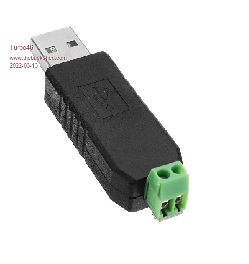 You may find one of these USB to RS485 converters useful if you are doing any development on a PC. ![]() Automatic flow control, no ground connection but works well with an un-grounded device. Available at various places, there are other types with GND connection and more too. Bill Keep safe. Live long and prosper. |