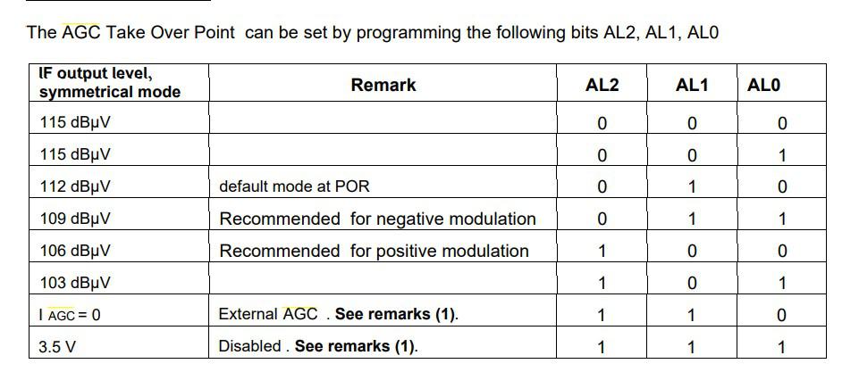 Apologies, I should have made it much clearer, I see things in my head what I want to know but it's really hard to put it into words most of the time After spending hours reading the datasheet of the AD8307 and trying to understand how it works with the output of the 6Mhz saw filter in the tuner I "think" I finally understand it It converts an RF signal to a DC voltage (I believe) In the datasheet it says Am I right in thinking that the maximum output of the AD8307 on the output pin is 2.5V and the voltage increases from 25mv for a very weak signal to 2.5v for a very strong one? Also with regard to the rf tuner What exactly does AGC "take over point" mean? ![]() I want to be able to switch between wanting to hear strong signals and weak signals using the I2c bus I want to be able to switch between town strong signals due to lots of signals being recieved and I need the gain turned down to motorway driving where I need weak signal detection and the gain turned up high Am I right in thinking if I set the AGC pin to 115 dBµV then it will detect weaker signals better and if I set it to 103 dBµV it would be better if the signals were stronger and I need a weaker signal gain? Edited 2022-05-29 17:54 by lew247 |
