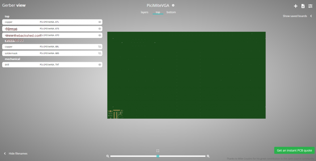 In for a penny as they say. I have in the past had success with simple adapter boards from PCBWay and I happen to have a $40 credit (I "won" in via Twitter). I wanted to start with the "simplest" PicoMiteVGA build I could, and reference design#1 seems to fit the bill. But when I upload the Gerbers I get the following: ![]() The key thing being the bottom left of the image, where the silkscreen, copper etc seems not to fit the board. I've not done anything to the Gerbers other than upload them. My other (granted limited) experience with my own PCBs is that the generated Gerbers display fine. Am I "doing something wrong" or missing the obvious? OR maybe a better question would be are people building from these reference designs or is there others floating round (looking for as "simple" as possible - both to keep the cost down and to allow them to be potentially be assembled by a group of 17yos) Other designs view correctly - so unsure what to progress with. The other route is of course to have a go myself, my the only things I've made have been "passive" adapter boards, so am hesitant (due to personal ability ;-) ) Cheers N Edited 2022-08-23 05:51 by Nimue Entropy is not what it used to be |