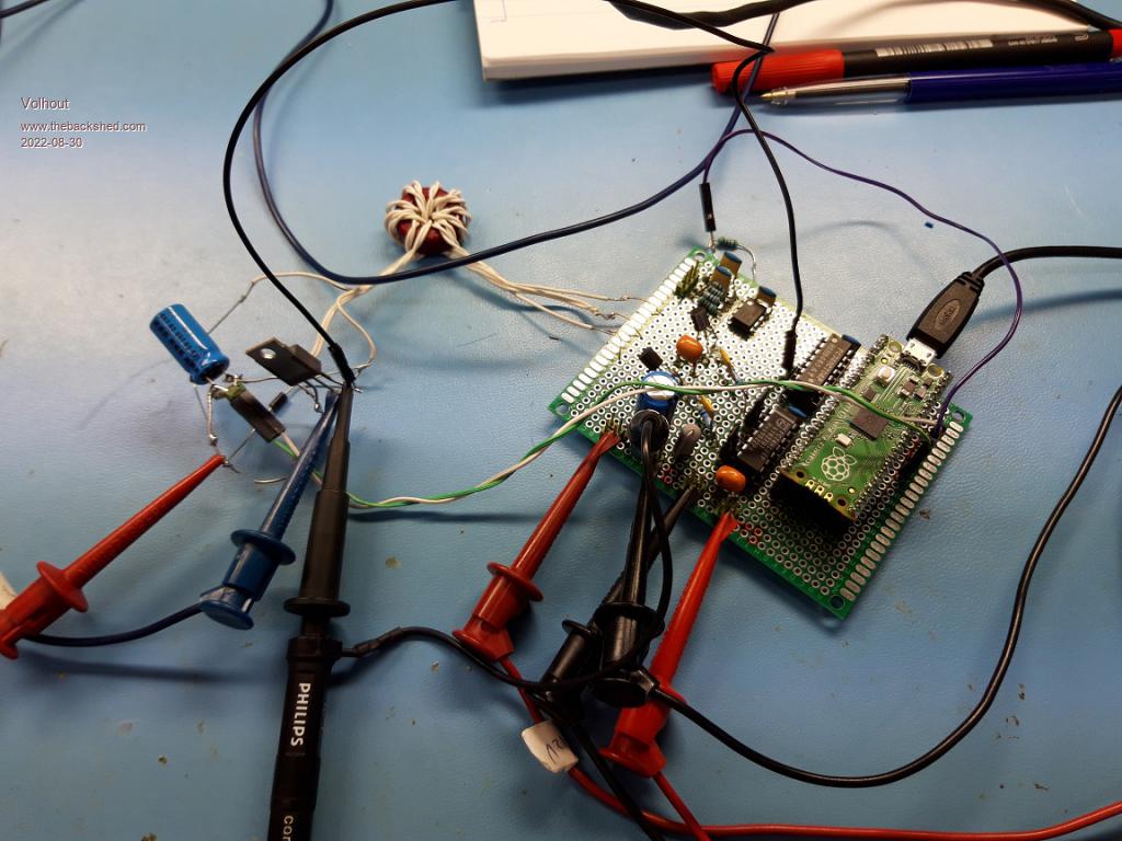 Picomite does it all..... Thanks to the phase correct PWM the pico is designing (or tuning) this transformer driver circuit. Currently with 2x 2N2222A, but will change to 2 FET's once the shipment comes in. The picomite controls (PWM1) the load to the convertor (10mA...600mA) The picomite drives the 2 switching transistors with phase correct PWM0 The picomite measures input (ADC) and output voltage (ADC) The picomite measures the current through the switching transistors (ADC). The picomite does all the math to determine the efficiency of the convertor. Tomorrow I'll write the tuning algorithm to vary frequency, load, duty cycle, and determine the efficiency landscape (3d graph in excel from CSV data). Then the setup moves to the climatic chamber to see how things behave at different temperatures. Anyway, once the algorithm works, I can tune the transformer and FET's for best efficieny. The only thing I do not have automated yet is the input voltage. Which I may do using serial port. I must have a MAX232 somewhere. The pico can then also control the power supply. ![]() In case you wonder why the wire is so thick for 600mA: it is tripple insulated wire since the convertor must isolate input from output under 12kV surge. I will add surge protection at the switcher transistors. Edited 2022-08-30 01:13 by Volhout PicomiteVGA PETSCII ROBOTS |