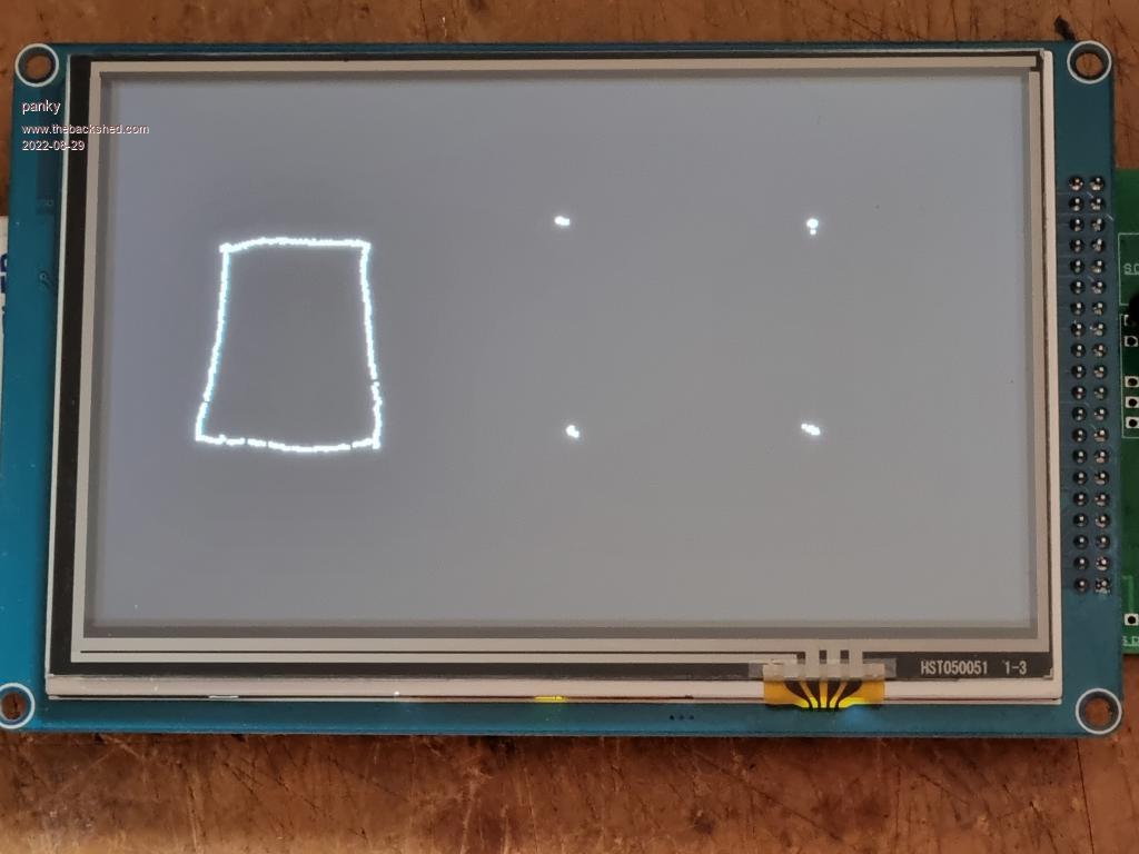 With 5.07.05b17, when running GUI TEST TOUCH, if I touch any spot on the display I get a cluster of dots (dozens) around the touch point that seem to smear off to one side.