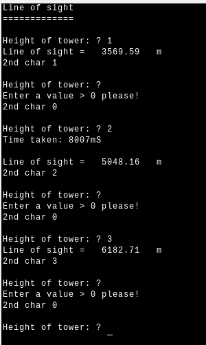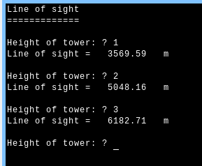 I wrote a small CMM2 BASIC (version 5.0702)  program using MMEdit (Linux) which calculates the line of sight - how far you can see when standing on a tower of hight 'towerhight'.