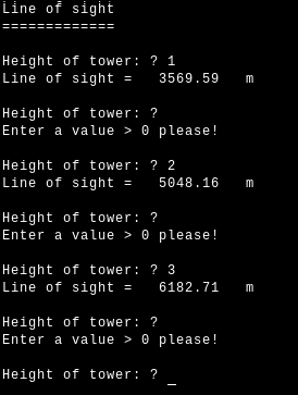 So I had to INPUT the towerhight and then calculate the line of sight.